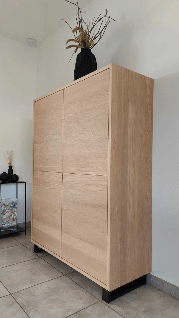 Ontdek de luxe van onze barkast eik, een elegante en duurzame barkast, volledig vervaardigd uit massieve eik. Deze stijlvolle kast voegt een warme, natuurlijke uitstraling toe aan elke ruimte en biedt een solide opbergoplossing voor uw favoriete dranken en glazen. De barkast kan naar wens op maat gemaakt worden, zodat hij perfect past bij uw interieur. Voeg karakter en kwaliteit toe met de tijdloze schoonheid van eikenhout, op maat gesneden naar uw smaak.
