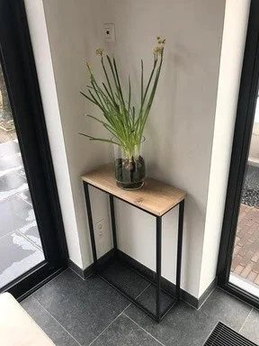 Deze bijzettafel is gemaakt van massieve eik met een bladdikte van 23 mm. Het blad is behandeld met een 2-componenten invisible coating, waardoor het volledig waterafstotend is. Maatwerk is mogelijk, en de verwachte wachttijd is 4-5 weken.