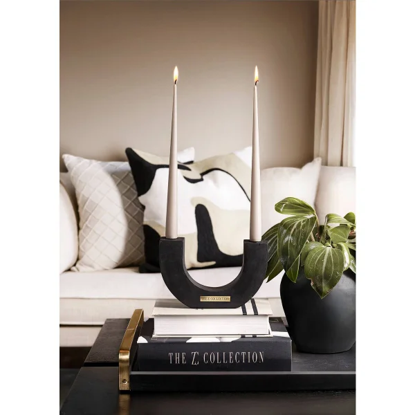 De Kandelaar Cliché is een stijlvolle U-vormige kandelaar voor kroonluchterkaarsen, uitgevoerd in zwart hout met een elegant messing detail. Op het messing element staat subtiel de tekst The ZC Collection, wat zorgt voor een luxe en eigentijdse uitstraling. Met een breedte van 22 cm en een hoogte van 15 cm is deze kandelaar perfect als decoratief statement op tafel, dressoir of vensterbank. Een tijdloos accessoire dat warmte en karakter toevoegt aan elk interieur.