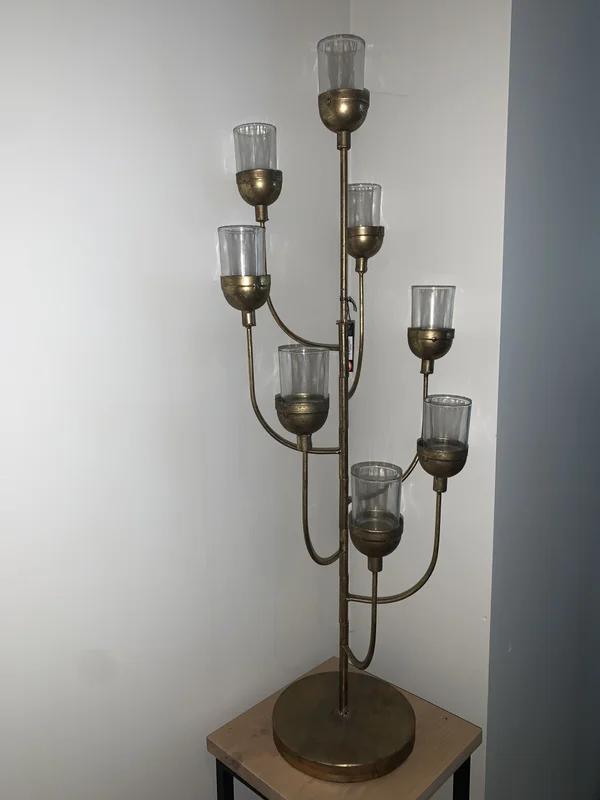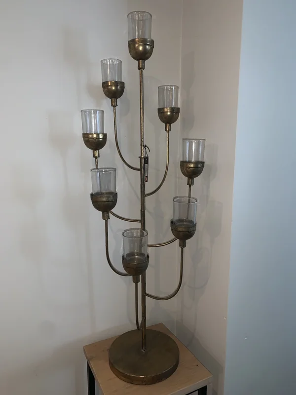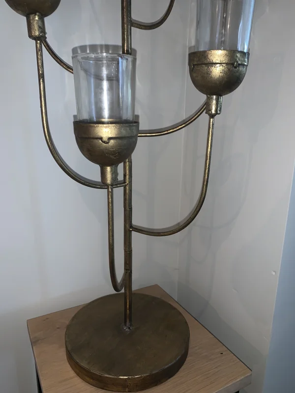 Deze gouden kandelaar van J-Line is een luxe en indrukwekkend woonaccessoire dat direct de aandacht trekt. Met zijn royale afmetingen van 35 x 35 cm en een hoogte van 98 cm is deze kandelaar perfect als statement piece in de woonkamer, hal of entree. De elegante gouden afwerking zorgt voor een chique uitstraling en past zowel in moderne als klassieke interieurs.