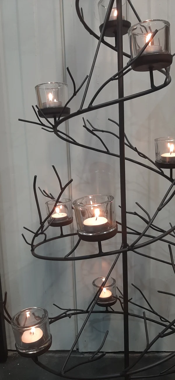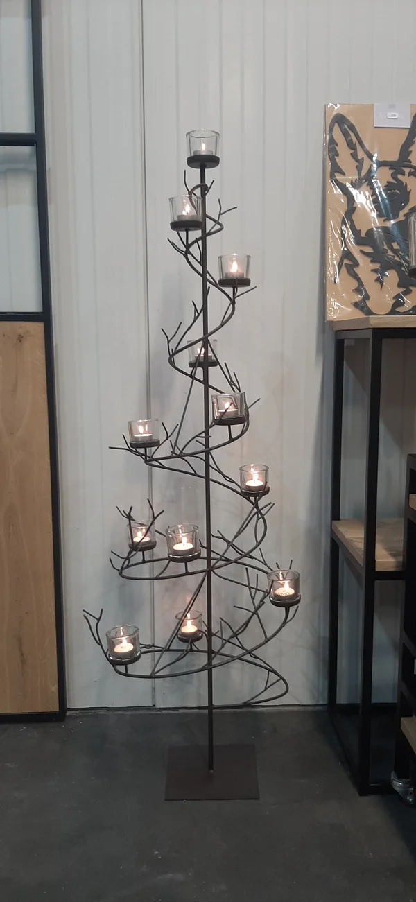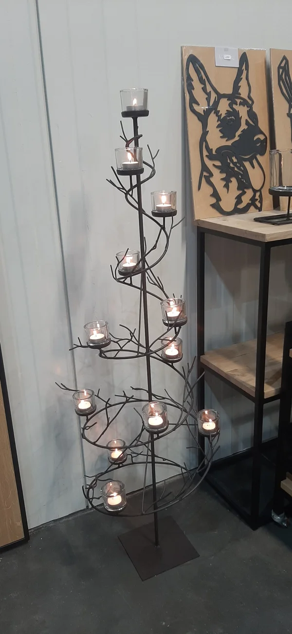 kerstboom volledig in staal met theelichten