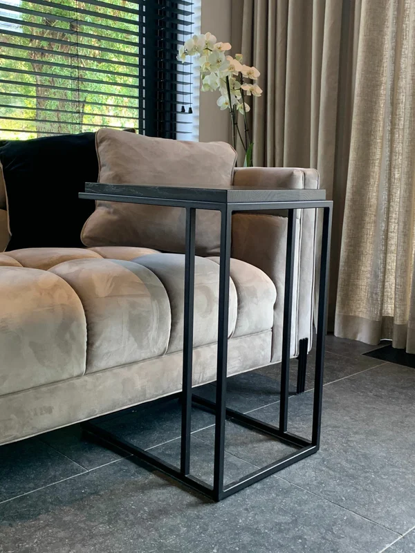 De laptoptafel Black is gemaakt van massieve eik, met een bladdikte van 2,5 cm. Het blad is gebeitst in RAL 9005 voor een elegante uitstraling. Het onderstel bestaat uit buisprofielen van 15/15 mm. De hoogte van de tafel is 65 cm, en de afmetingen op de foto zijn L 50 cm x Br 35 cm. Maatwerk is mogelijk.
