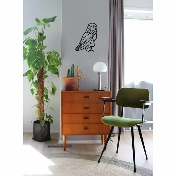 Lasergesneden uil in geometrische stijl.