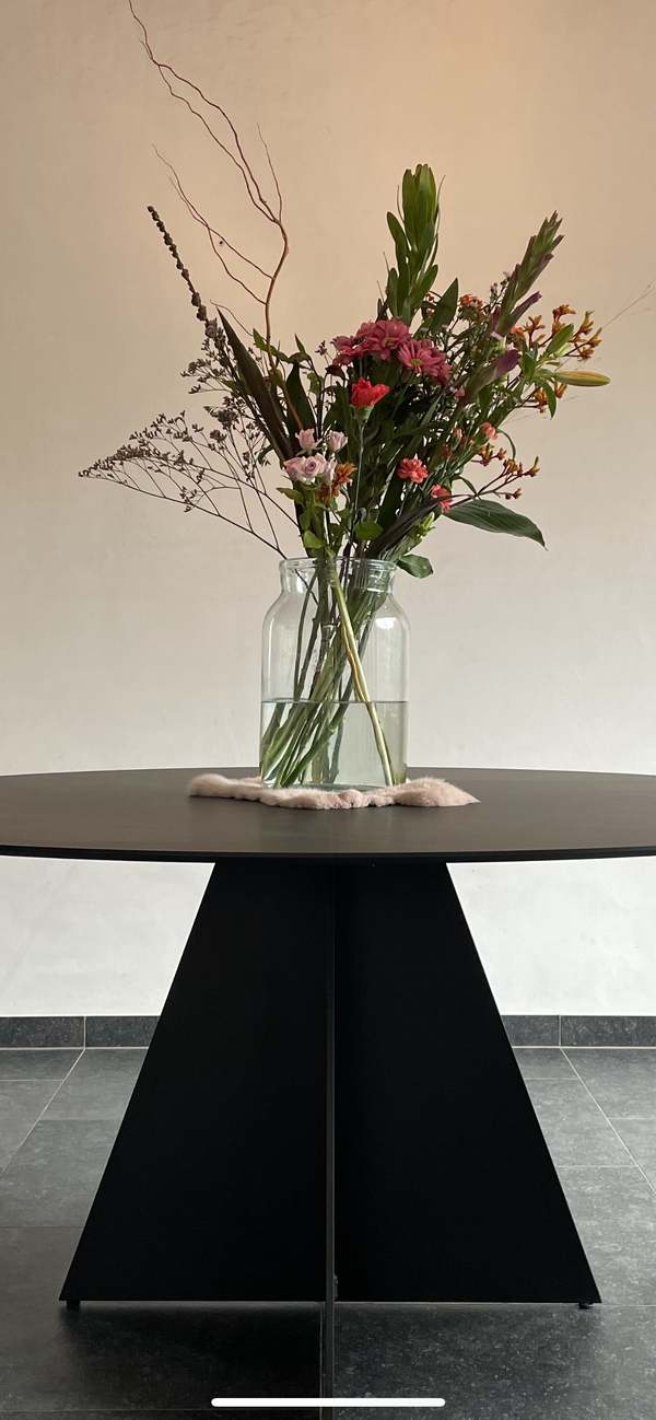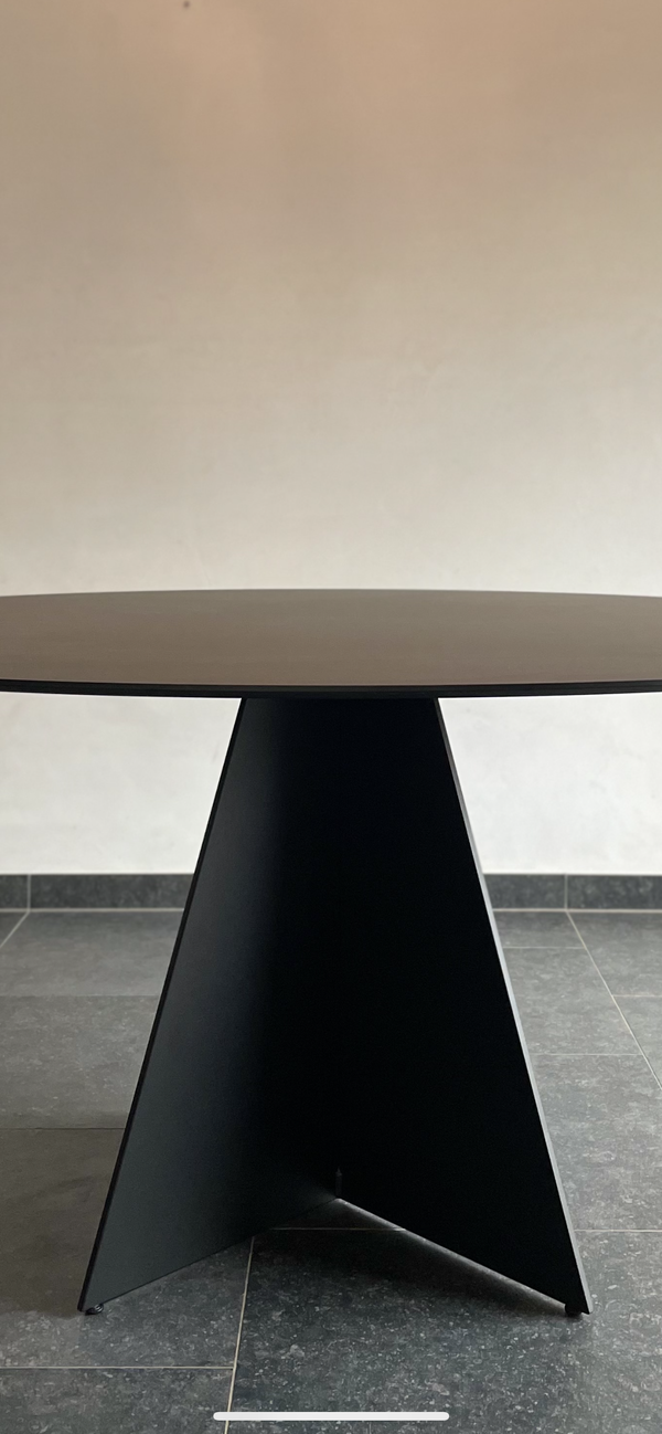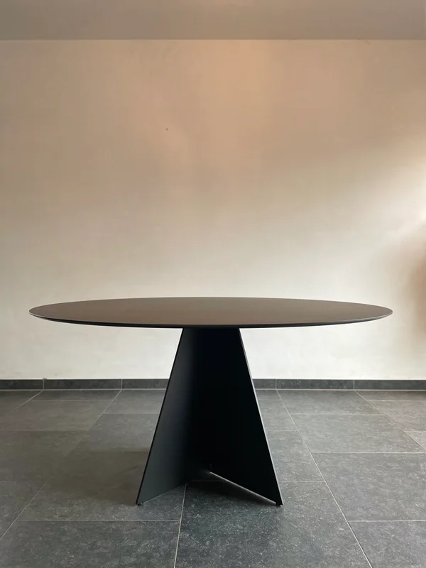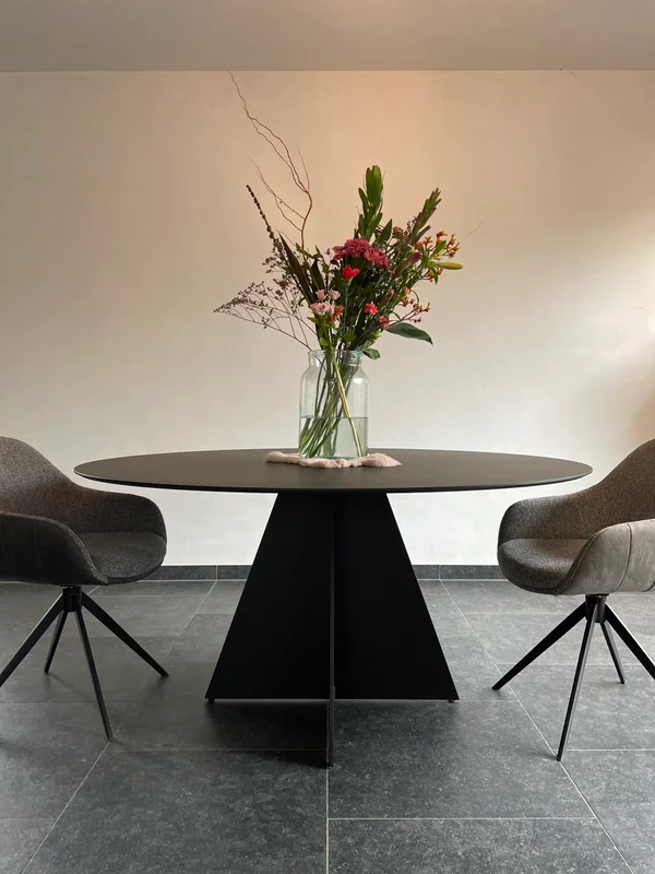 De ronde eettafel Fenix Roia is vervaardigd uit hoogwaardig Fenix HPL volkern, een krasbestendig en onderhoudsvriendelijk materiaal met een luxe uitstraling. Uitgevoerd in de kleur Nero Ingo (zwart), maar beschikbaar in een breed scala aan andere kleuren om perfect bij jouw interieur te passen. Het tafelblad heeft een slanke dikte van 12 mm met een verfijnde verjongde rand. Volledig op maat te maken voor een unieke en stijlvolle eetruimte.