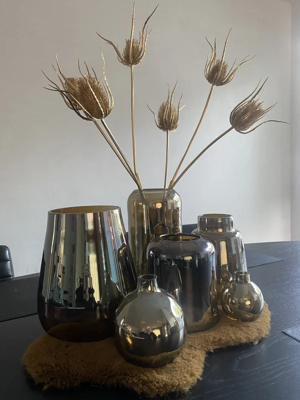 De Smoked Vase is een elegant en veelzijdig woonaccessoire met een stijlvolle rookglaslook, die een moderne en luxe uitstraling aan je interieur geeft. Verkrijgbaar in diverse hoogtes: 29 cm, 26 cm, 22 cm, 20 cm, 15 cm (rond) en 11 cm (rond), waardoor ze geschikt zijn voor zowel grote als kleine bloemstukken of als losse decoratieve elementen. Het subtiele, getinte glas maakt de Smoked Vase tot een tijdloze eyecatcher die moeiteloos in uiteenlopende interieurstijlen past.