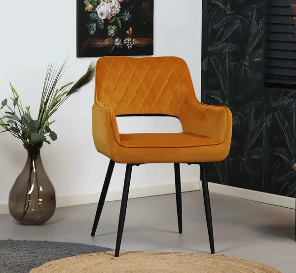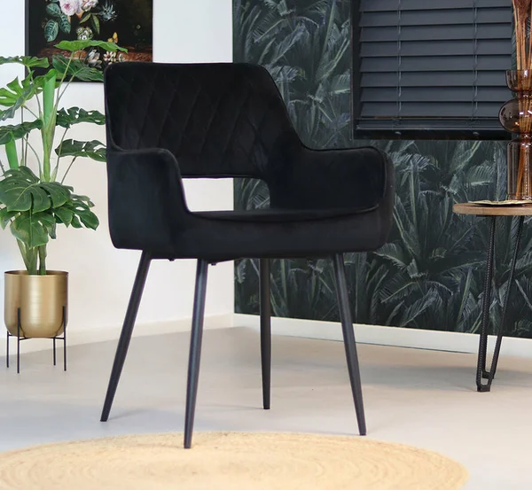 De Mika eetkamerstoel in luxe velvet voegt elegantie en comfort toe aan je eetkamer. Met zijn zachte stof en metalen frame is het de perfecte combinatie van stijl en functionaliteit. Verkrijgbaar in verschillende kleuren, past deze stoel moeiteloos in diverse interieurstijlen.