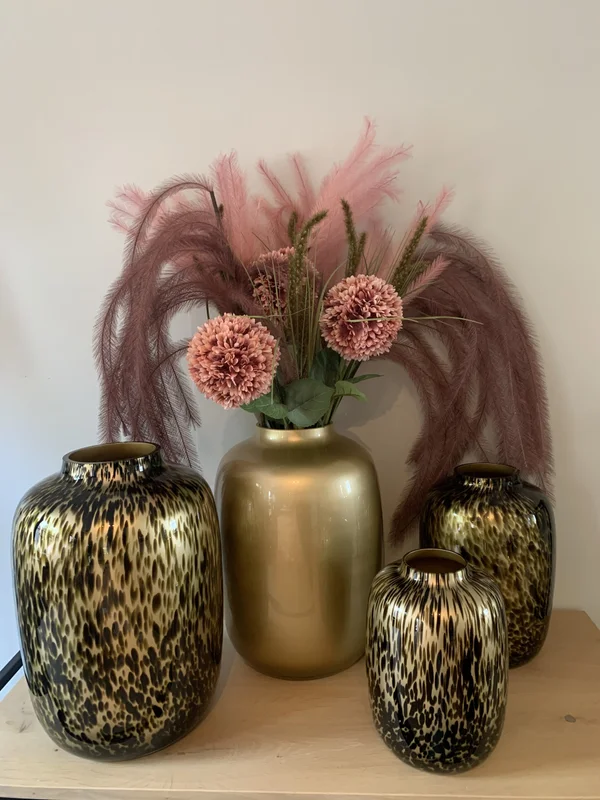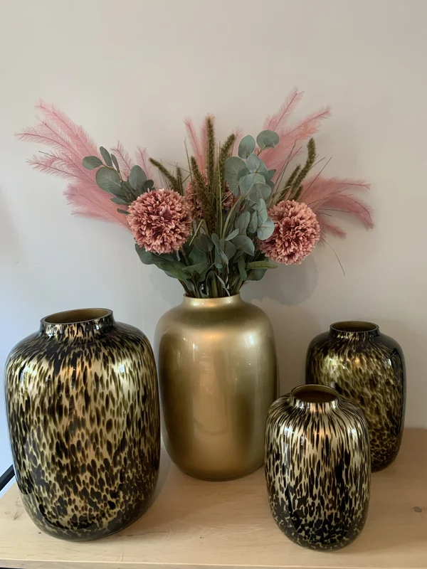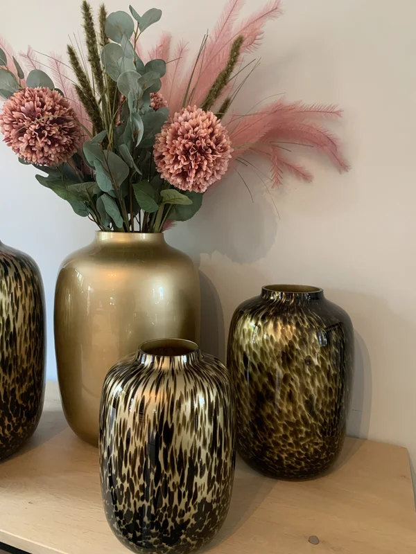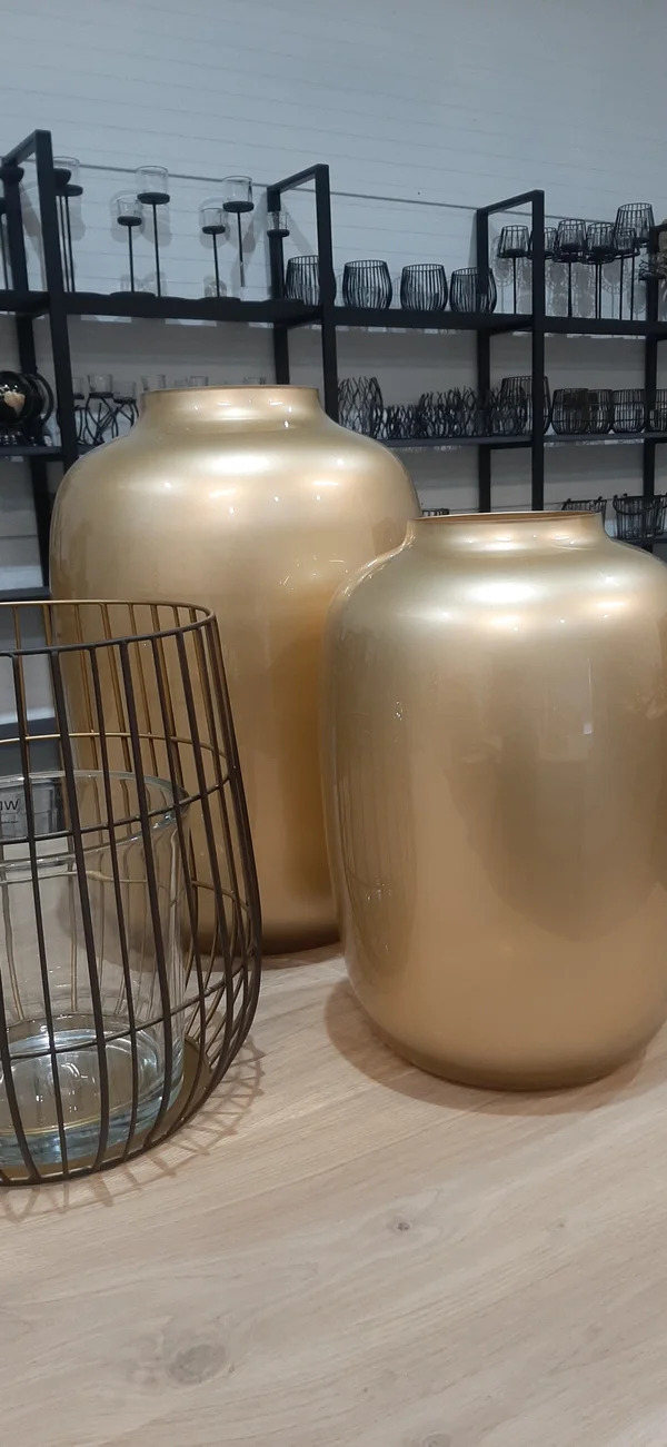 De Artic Gold vaas van Vase The World is een luxueus handgeblazen glazen kunstwerk dat een stijlvolle en glamoureuze uitstraling aan je interieur toevoegt. Verkrijgbaar in diverse formaten: theelicht Ø 9 cm, Ø 12 cm, Ø 15 cm, vazen Ø 21 cm x H 29 cm, Ø 25 cm x H 35 cm, Ø 32,5 cm x H 45 cm, en volledig goud afgewerkt in Ø 21 cm x H 29 cm en Ø 25 cm x H 35 cm. Het hoogwaardige glaswerk en de elegante gouden tint maken deze vaas perfect voor (kunst)bloemen of als opvallend decoratief object. Voeg luxe, glans en karakter toe aan elke woonruimte met de Artic Gold vaas.