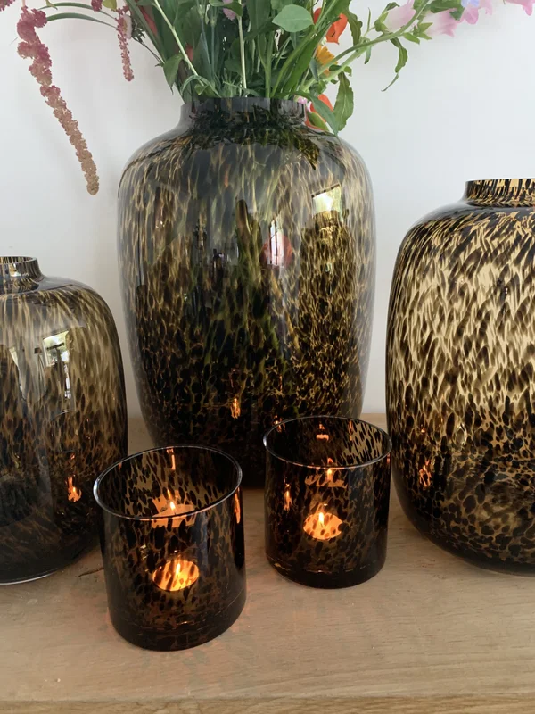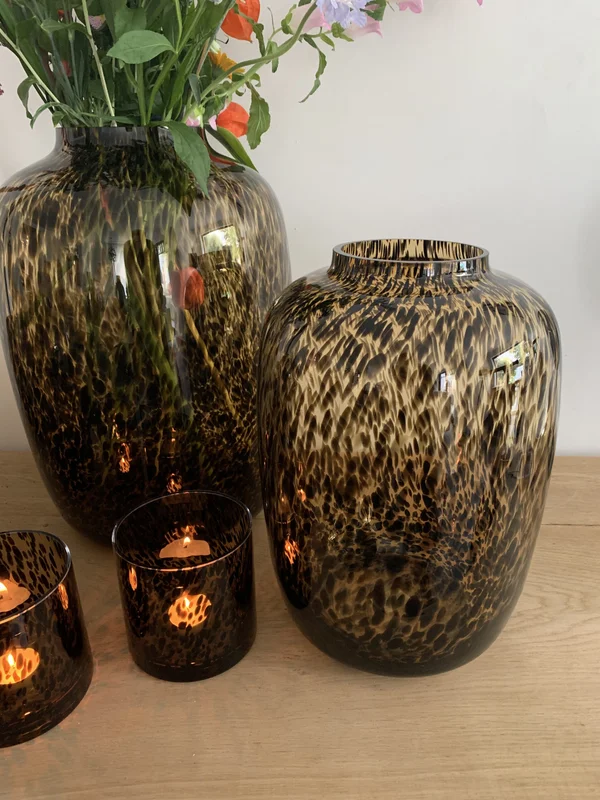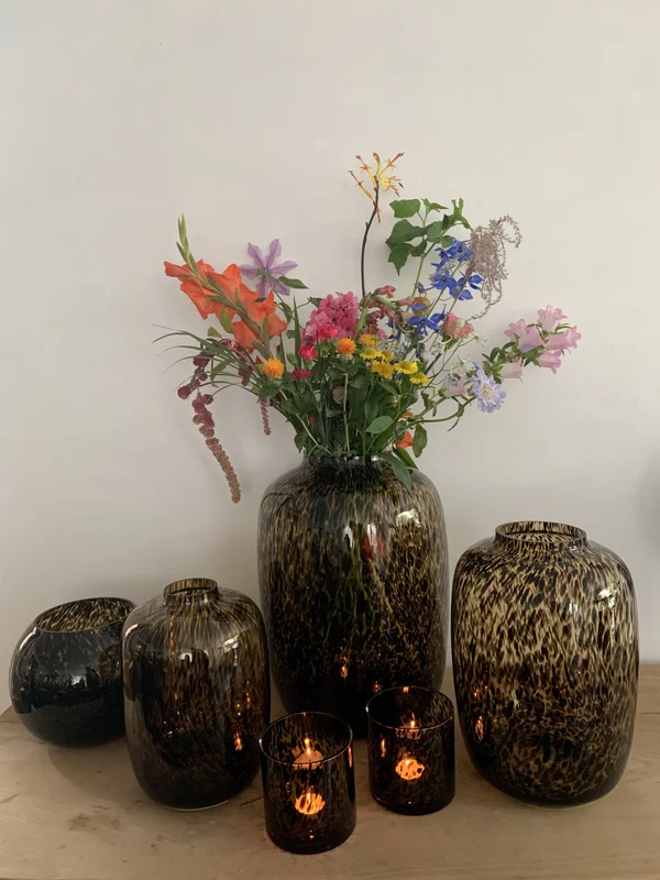 De Artic vaas (ook bekend als Artic Cheetah) is een handgeblazen glazen kunstwerk van hoogwaardige kwaliteit. Deze stijlvolle vaas voegt luxe en karakter toe aan je interieur en is perfect te combineren met (kunst)bloemen of als zelfstandig decoratief object. Verkrijgbaar in diverse formaten: theelichten set van 2 (Ø 12 cm x H 12 cm), ronde vaas Ø 20,5 cm x H 25 cm, Ø 21 cm x H 29 cm, Ø 25 cm x H 35 cm en Ø 32,5 cm x H 45 cm, zodat er altijd een passende maat is voor jouw ruimte. Het verfijnde glas en het unieke ontwerp maken de Artic vaas tot een tijdloze eyecatcher.