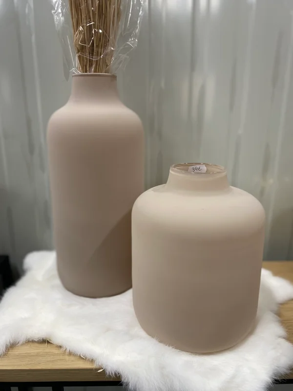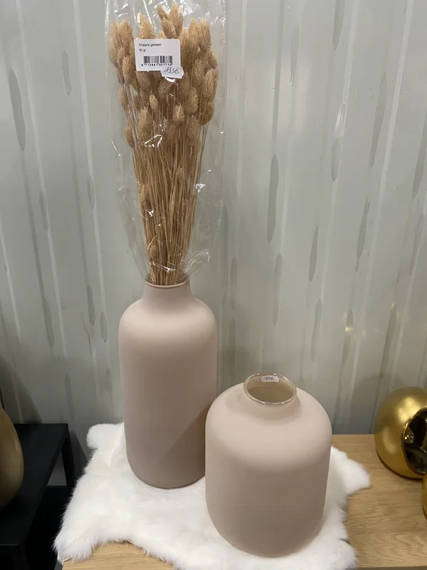 De Edora vaas is een stijlvol en modern woonaccessoire in een matte zandkleurige afwerking. Verkrijgbaar in twee formaten: H 23 cm x D 16 cm en H 34 cm x D 13 cm, ideaal voor zowel kleine als grotere bloemstukken. Het minimalistische design en de zachte kleur maken deze vaas perfect als decoratief object of als elegante toevoeging aan je interieur. Een tijdloze blikvanger die rust en stijl in elke ruimte brengt.