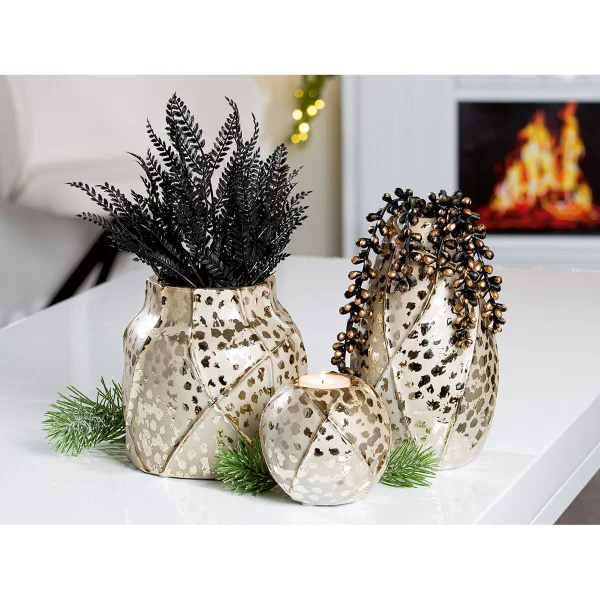 Voeg een vleugje luxe toe aan je interieur met de gouden halsvaas Onza. Deze elegante keramische vaas is volledig waterdicht en daardoor geschikt als bloemenvaas of decoratief accent. Met haar tijdloze ontwerp en afmetingen van 15,5 x 14,5 cm past de Onza-vaas perfect in elke ruimte. De glanzende goudkleur zorgt voor een stijlvolle, moderne uitstraling die warmte en klasse toevoegt aan je woondecoratie.